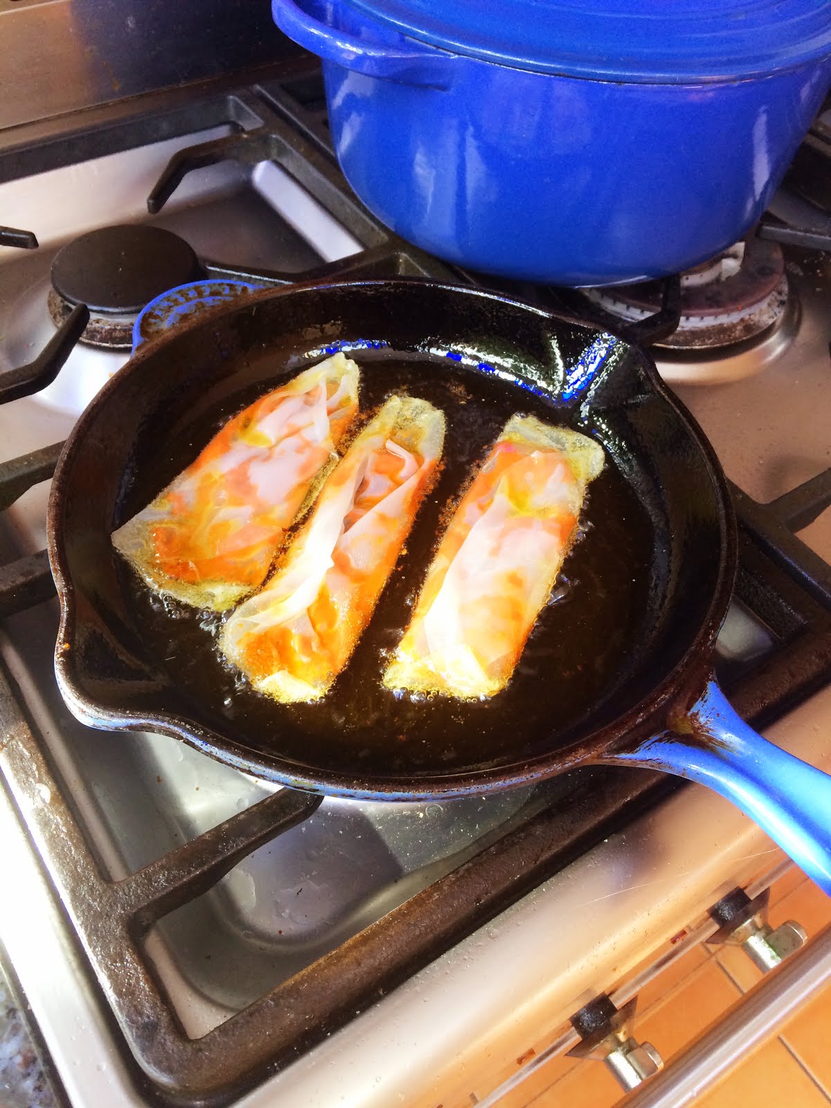 The secret is not to overcook the slices: first they will bubble up a bit, and you want that, get some air in to keep them soft. As soon as you see the edges drying turn over the slices and fry the other side for even less time, otherwise the sun-dried tomato paste will burn. If the oil becomes too contaminated with burned paste you will need to change it.